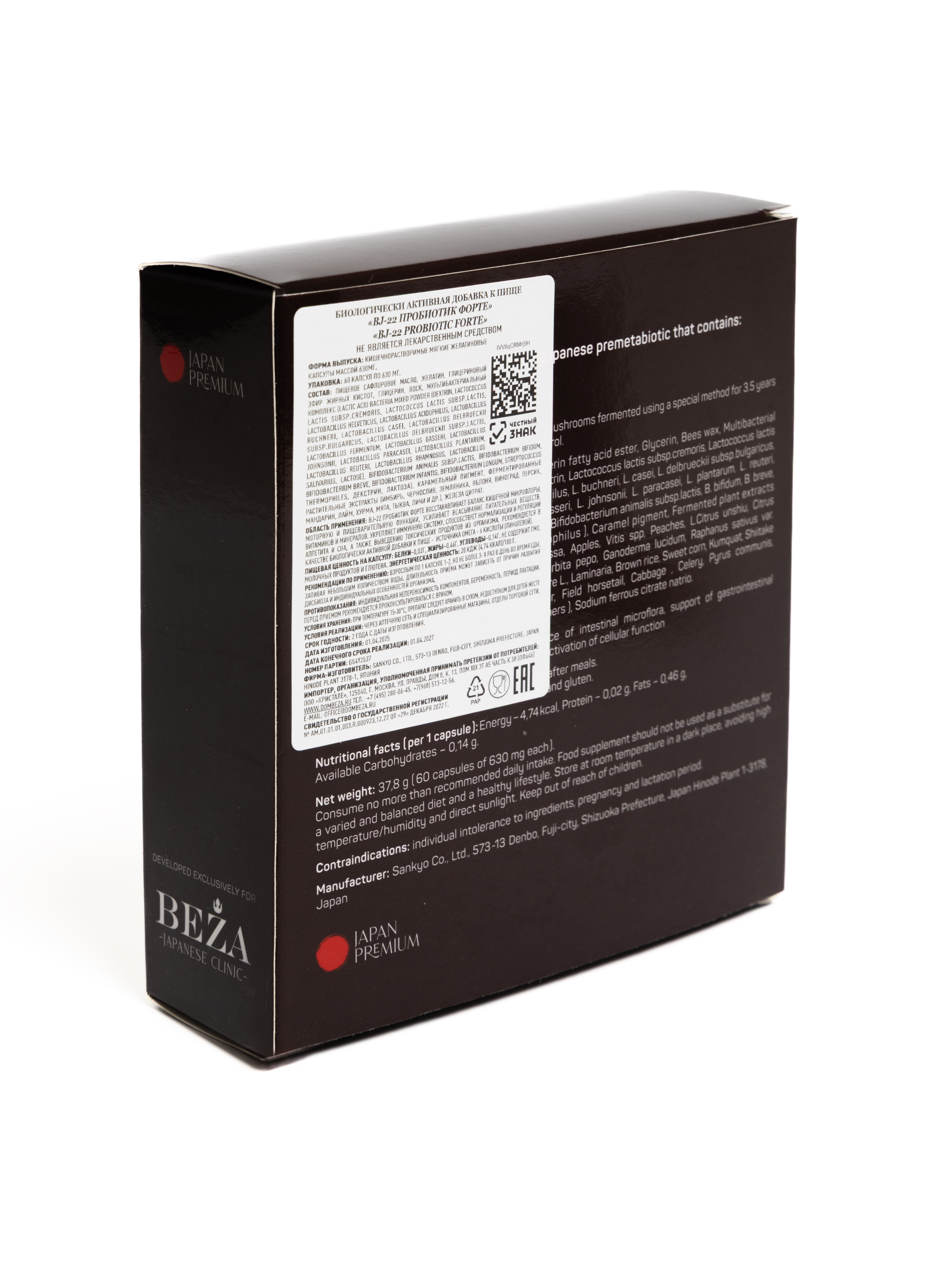 Производство BJ-22 ПРОБИОТИК ФОРТЕ соответствует стандарту GMP и японским строгим нормам качества. Контроль готовой продукции осуществляет авторизованная правительственная японская лаборатория (JFRL).